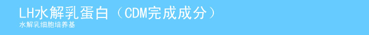 水解乳蛋白细胞培养基是早期使用的天然细胞培养基,常用于鸡胚细胞、鼠肾细胞的培养。本品系使用了水解乳蛋白氨基酸成份和欧氏平衡盐等综合而成的粉末型培养基,克服了水解天然乳蛋白成份易变的缺点,从而稳定了细胞培养的结果。