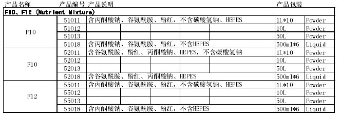 F10和F12细胞培养基是Ham,R.G于1963和1965年,正名为F10或F12营养混合物(F10或F12 Nutrient Mixture)。